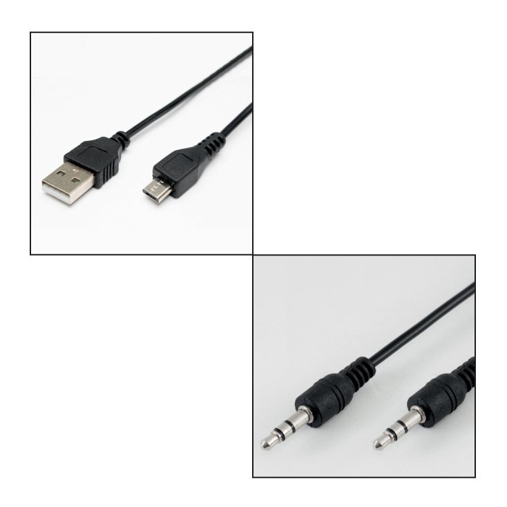 - U priboru se isporučuje USB kabel za punjenje, AUX kabel i daljinski upravljač