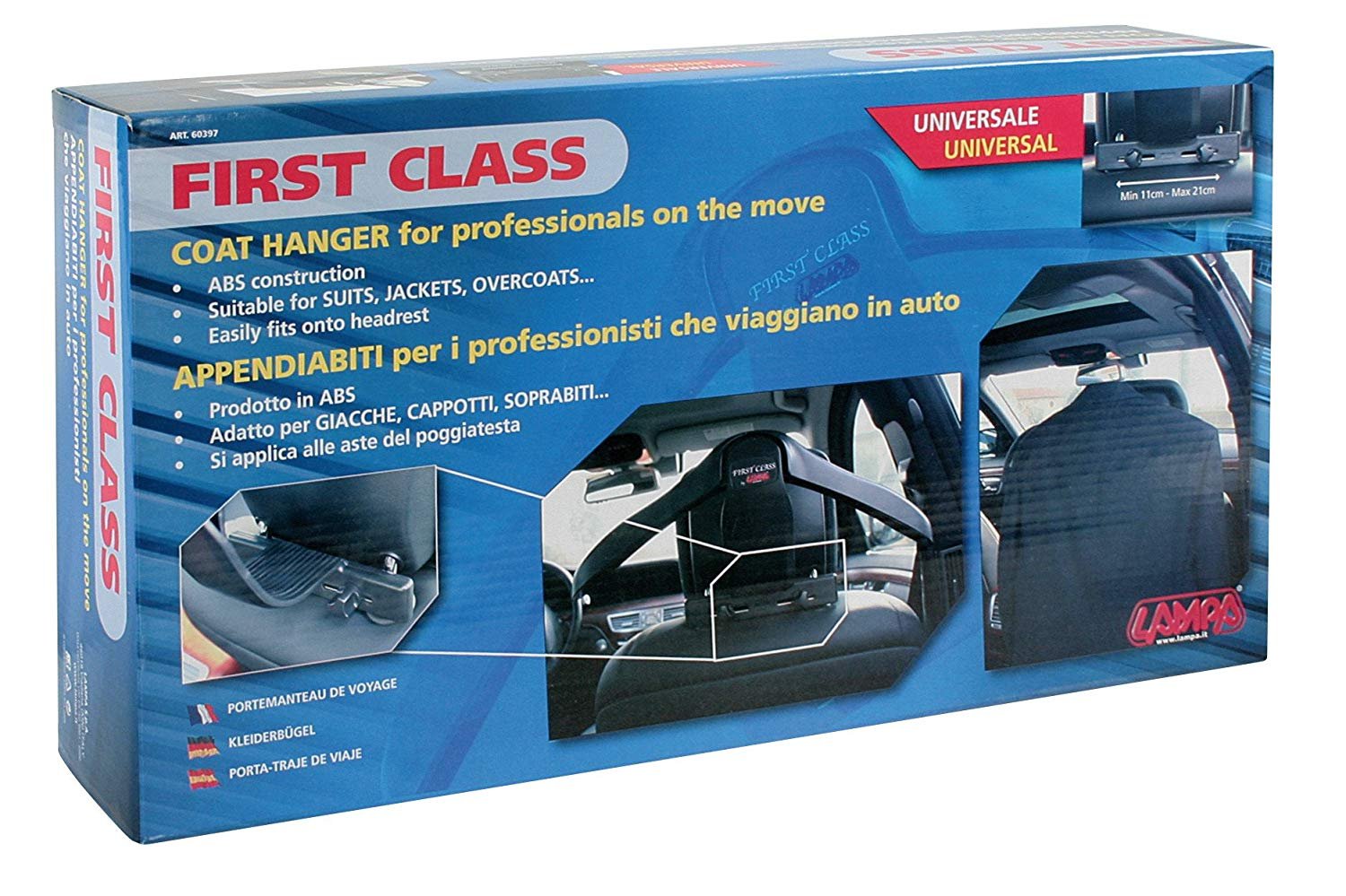Prvoklasna vešalica za odelo u automobilu, za ljude u pokretu. ABS konstrukcija, pogodno za odela, jakne, kapute. Lako se postavlja na odmorišta za glavu na sedištima. Mozete je potraziti u sklopu Boss Auto ponude Auto Opreme i Auto Kozmetike. Veoma praktican dodatak za Vas automobil. Omogucava vise prostora u Vasim kolima, kao i sprecavanje guzvanja Vase odece prilikom putovanja.