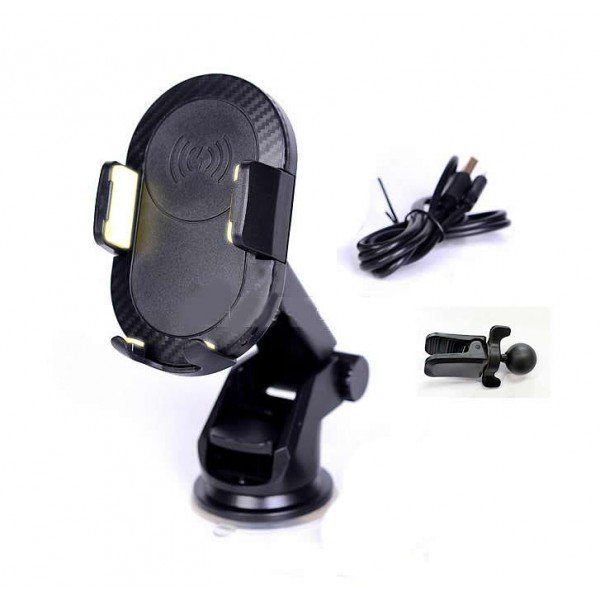 Wireless punjac i stojeci telefonski vakuum drzac sa mogućnošću bežičnog punjenja . Moze da se lepi na staklo ili zakaci na ventilaciju. Okreće se za 360 stepeni. Vacuum pad lako prenosiv, može se koristiti za upotrebu kod kuće kompatibilan sa svim mobilnim telefonima i GPS uređajima, tableta, eBooks 4,5-6,5 inch telefone. Izlaz: DC 9V, 1A – 1.2A .Dimenzije: 98 x 97 x 72 mm